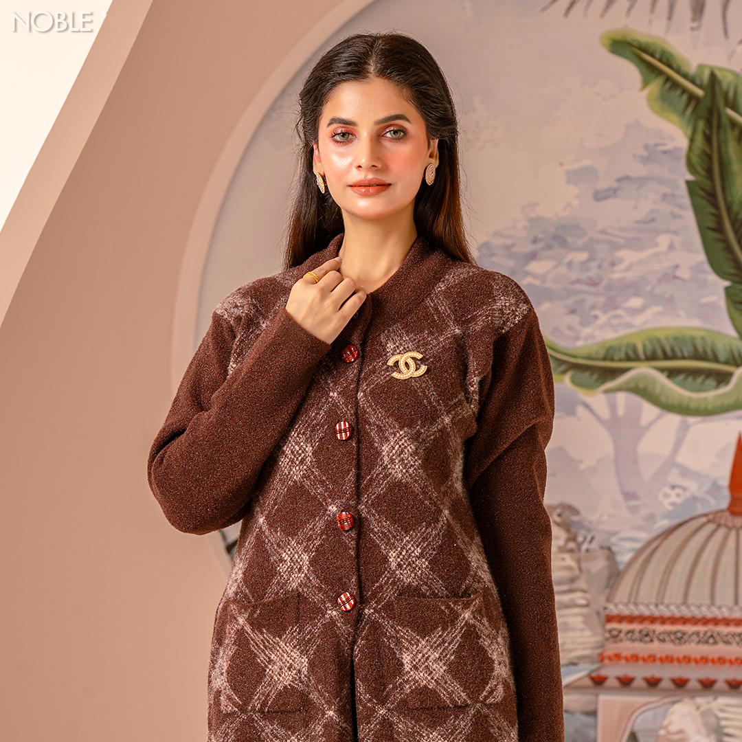 Stay cozy and stylish with this Torrent Diamond Cardigan. Featuring a subtle brown pattern, this mid-length jacket is crafted from a soft, warm fabric, perfect for chilly days. The wide, collared neckline and gold-tone button front add a touch of sophistication, while the relaxed fit ensures comfort. Whether you're dressing up for a casual outing or layering for a semi-formal look, this versatile jacket is a must-have in your wardrobe. Pair it with your favorite jeans or dress for an effortlessly chic ensemble!
