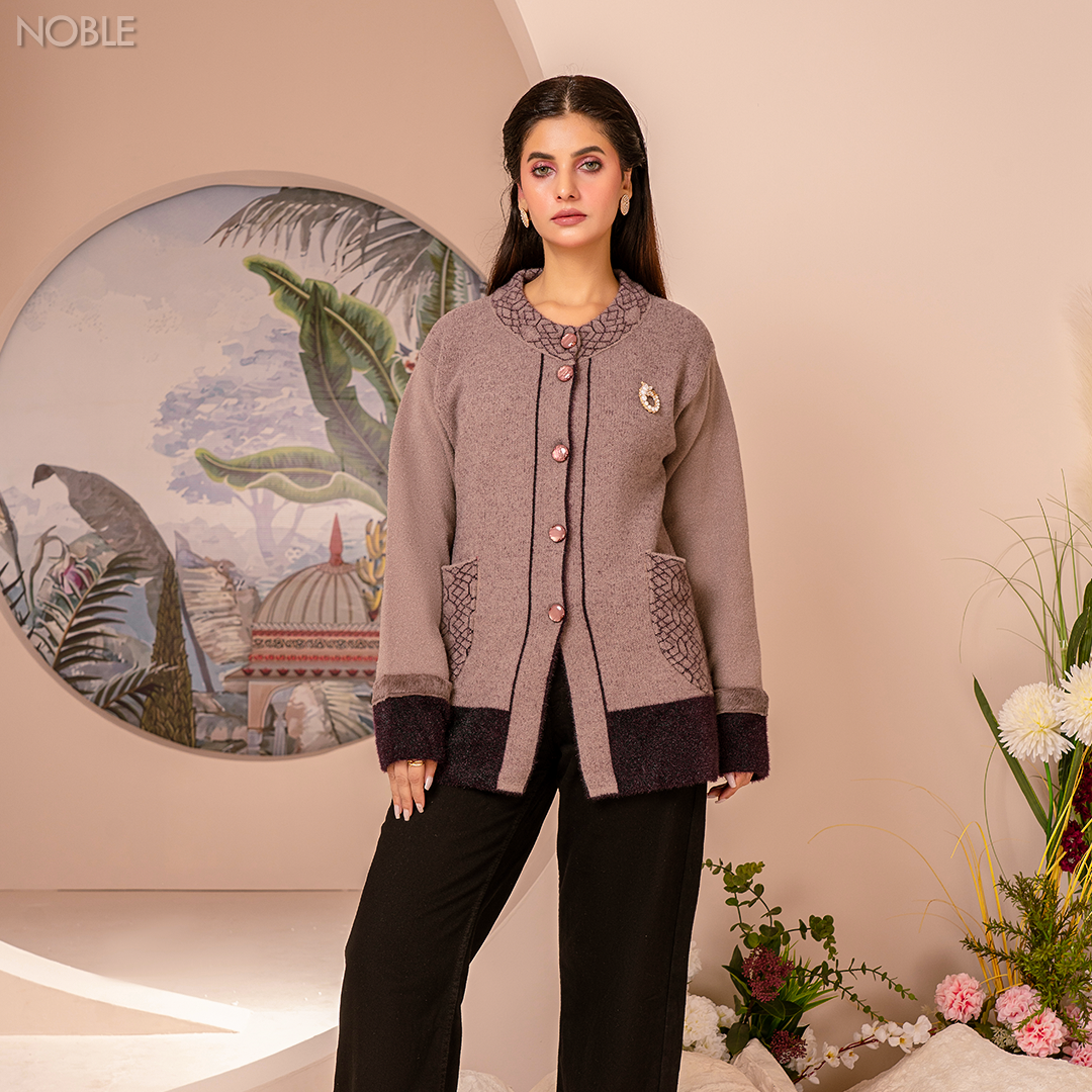 Stay cozy and stylish with this Midnight Cloak. Featuring a subtle grey pattern, this mid-length jacket is crafted from a soft, warm fabric, perfect for chilly days. The wide, collared neckline and gold-tone button front add a touch of sophistication, while the relaxed fit ensures comfort. Whether you're dressing up for a casual outing or layering for a semi-formal look, this versatile jacket is a must-have in your wardrobe. Pair it with your favorite jeans or dress for an effortlessly chic ensemble!